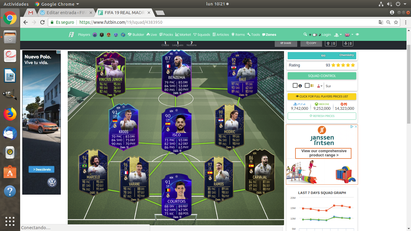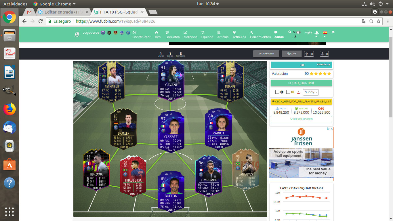 Como podéis ver las plantillas que os presento son de los equipos: Real Madrid (arriba, España) y PSG, París Saint-German (abajo, francia).